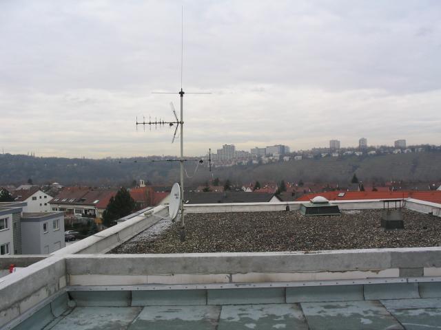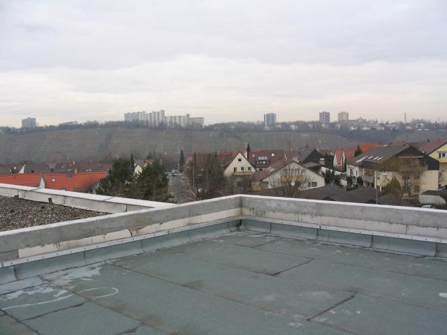 Als nächstes wurde das Flachdach hergestellt und abgedichtet. Am 19.12.2003 war gerade die Abdichtung in Arbeit. Das Klettern auf das Dach brachte auch ein paar Blicke in die Umgebung: